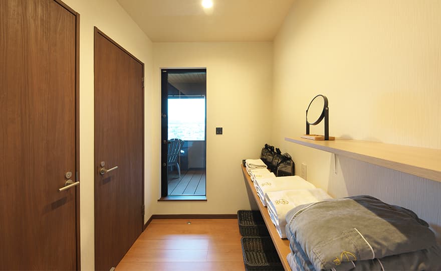 | アメニティ | バスタオル/フェイスタオル/バスローブ/シャンプー/リンス/ボディソープ/メイク落とし/洗顔フォーム/化粧水/乳液/ボディウォッシュスポンジ/洗顔ネット/シャワーキャップ/コットン/綿棒/ヘアブラシ/歯ブラシ/フェイスパック/スリッパ |