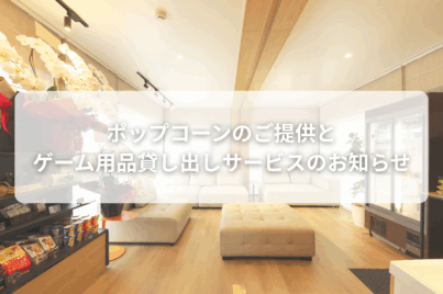 【お知らせ】ポップコーン提供&室内で遊べるゲーム用品の貸し出しサービスについて